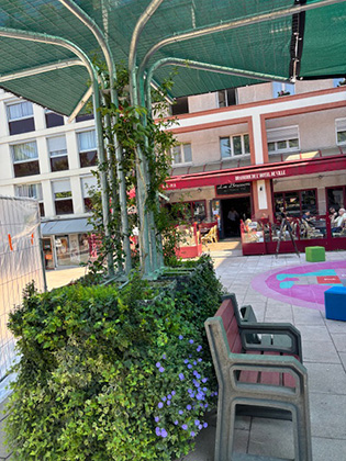 Le CityMur Oasis est un mobilier vert urbain polyvalent 100% végétalisé pour créer des« ilots de fraîcheur » pour nos cours d’école, nos places. Avec les pics de chaleur grandissant, le piéton se rafraichira et se reposera à l’ombre d’une toiture végétale de 9m². Nos enfants pourront réinvestir les cours de récréation ainsi ombragés. Equipé d’un bloc béton invisible en son centre, il est aussi un mobilier de protection. Il est facilement mobile et modulable. Cela permet de transformer les places pour accueillir des activités variées. Chaque Oasis pourra être rassemblé par une toile d’ombrage de 9m² permettant ainsi d’augmenter la surface de fraîcheur